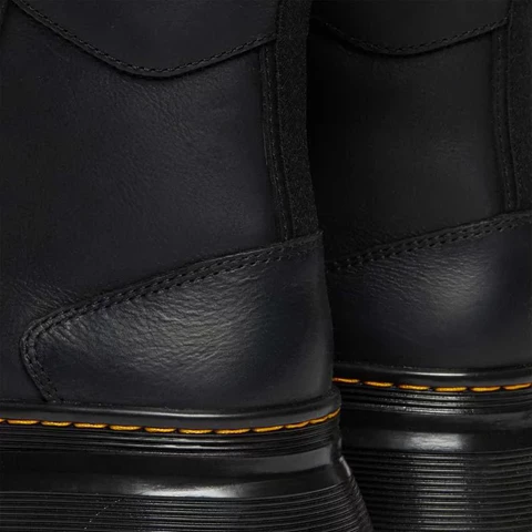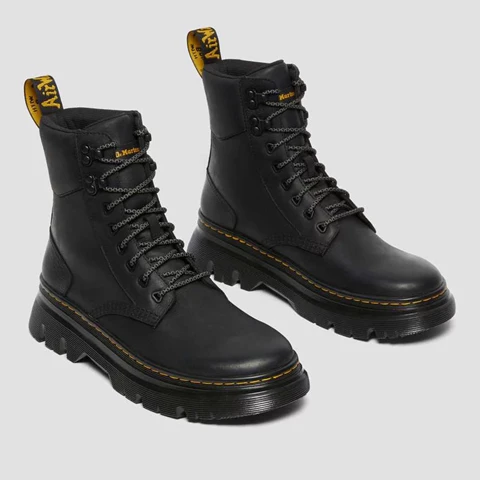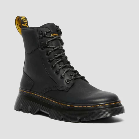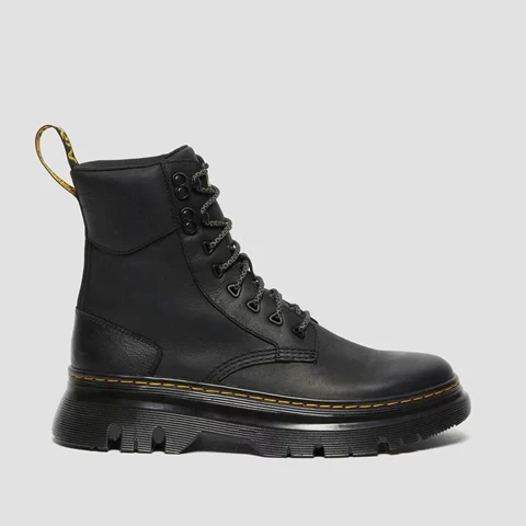 DM’s boots. Taken to the next level. Set on an extra rugged utilitarian outsole, our Tarik boot is a street-inspired silhouette built for maximum comfort. Made from Wyoming, a rich leather with a subtle grain and a comfortable SoftWair insole. Finished with hiker-inspired laces, yellow stitching and a black and yellow heel loop. Wyoming is a rugged leather with a subtle grain and oily finish. Clean with a damp cloth and care with Dr. Martens Wonder Balsam