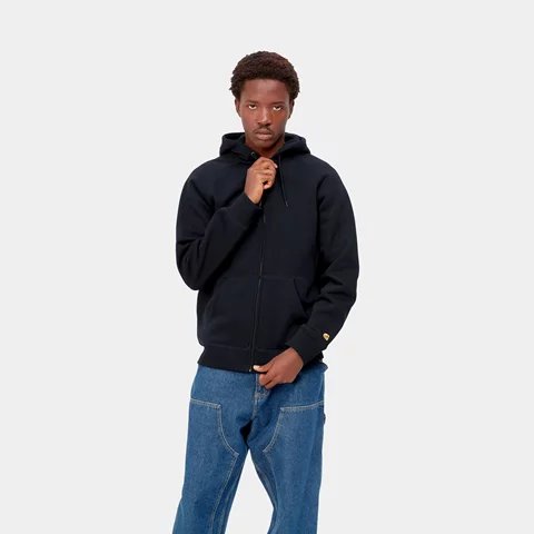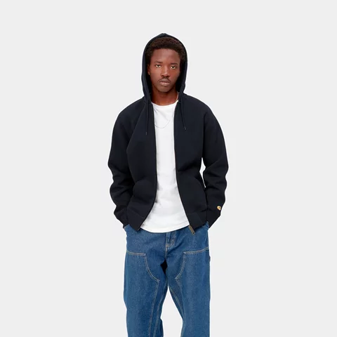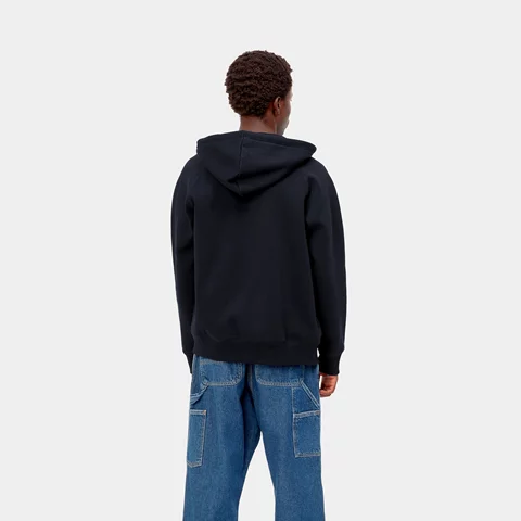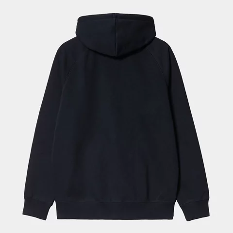 Part of the Chase Program which focuses on jersey-based staples, the Hooded Chase Jacket is constructed from heavyweight, 13 oz cotton-poly fabric, which has been brushed to give it a fleece-like backing. The garment has a regular fit, and is detailed with raglan sleeves, flatlock stitching, and a kangaroo pocket. An embroidered Carhartt WIP 'C' Logo appears on the left sleeve.