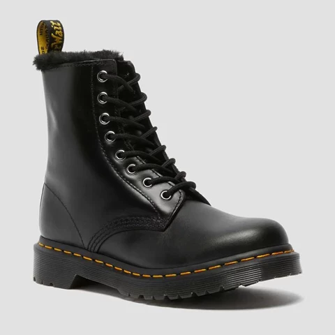 Designed to take cold weather in its stride. These boots are lined with a soft faux-fur and built from Atlas, a smooth, waxed leather with a subtle pull-up and satin sheen finish. Marked by our yellow welt stitching, they have a yellow scripted heel loop and tough commando BEN sole.