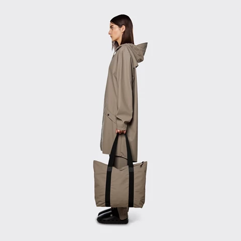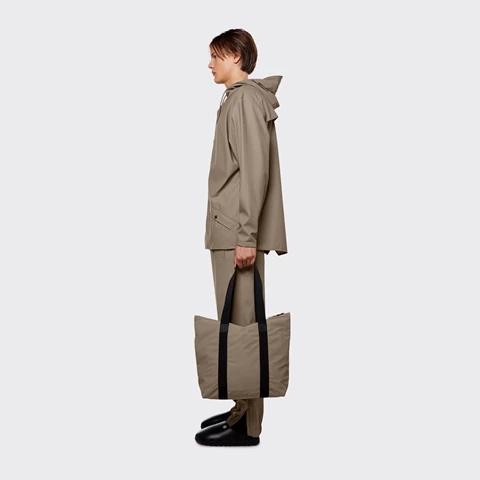 Tote Bag Rush is cut in Rains’ signature waterproof PU fabric, engineered for carrying strength, durability, and a smooth feel.