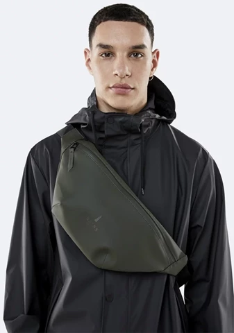 Bum Bag is a functional bag crafted with an adjustable webbing strap that can be worn over the shoulder, cross the body, or at the waist. Made from a water-resistant material with a matte finish, Bum Bag has one compartment and a metal buckle closure on the webbing strap.